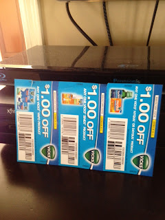 He had the audacity to ask me if the coupon over the DVR was going to become part of our permanent bedroom decor because of a "small, blinking light?" Yes, JD, I think it blends quite nicely. The blue in the Vicks logo matches our bedspread.
